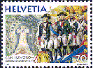 In 1799 the Russian army under General Suvurov crossed the Alps during the war against the French. The first stamp of this joint issue with Russia is designed by B. Iljuchin from Moscow and shows the General, his officers and the monument in Schöllenen Gorge. The second stamp, designed by Courvoisier SA, shows the shore of Lake Klöntal with the Suvorov vanguard under Major General Prince Bagration in the foreground. Values: 70 and 110 c. Date of issue: 24 September 1999. Size: 39.6 x 30 mm. Print: Rotogravure, Courvoisier SA.