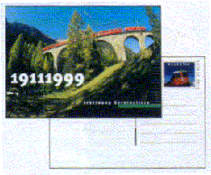 On 19 November 1999 a new railway line will be opened in Switzerland. To mark this event a picture postcard with a "taxe perçue" (postage paid) imprint will be issued on 24 September, two months in advance of this day. This new line connects Selfranga and Saglianins and is 22 kilometres long. Size: 148 x 105 mm. Print: Offset.